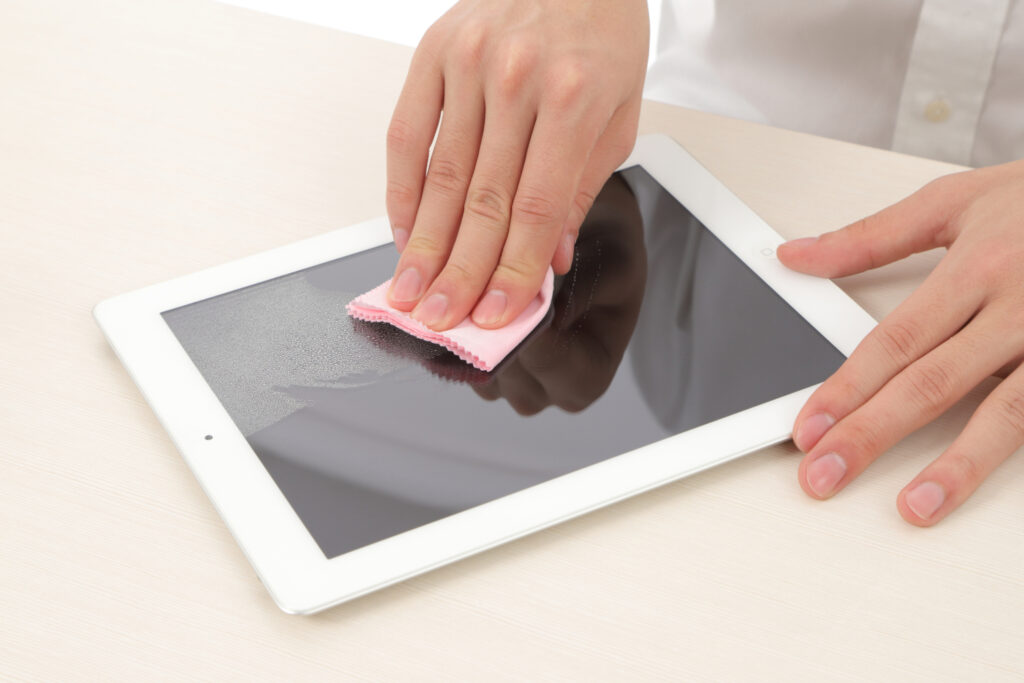 飲食店用タブレットコーティングは、注文用タブレットや受付端末の画面表面に透明な保護膜を形成し、傷や汚れの付着を防ぐコーティングです。指紋や皮脂が付きにくくなり、清掃もしやすくなるため、端末を清潔で美しい状態に保ちながら快適な操作性を維持します。