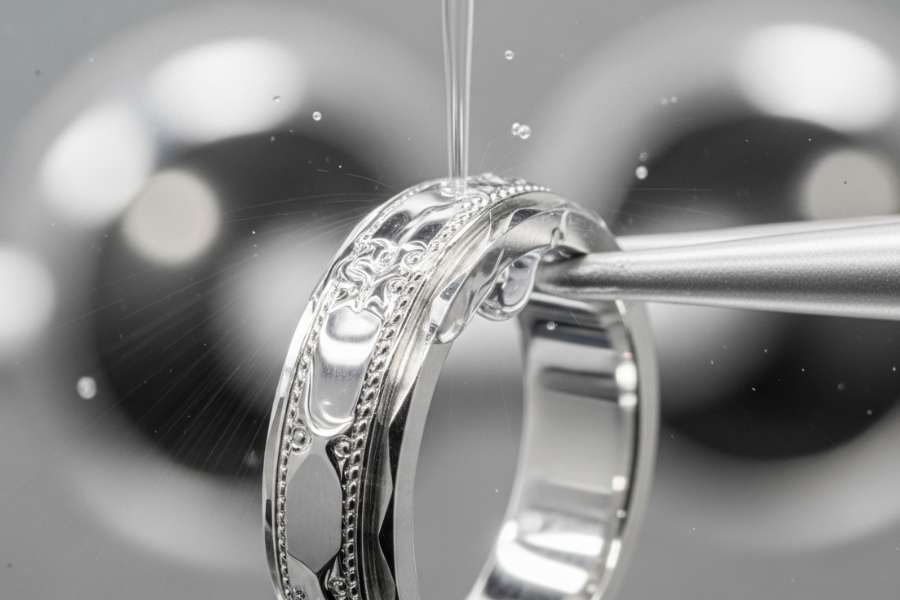 ジュエリーコーティングは、宝飾品の表面に透明な保護膜を形成し、傷や汚れからジュエリーを守るコーティングです。日常使用によるくすみや汚れの付着を抑え、美しい輝きを長く維持します。大切なジュエリーをより美しい状態で楽しんでいただくための表面保護技術です。
