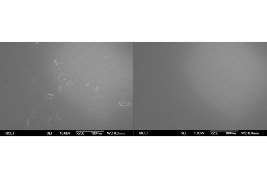 微細なナノポリマーが表面の凹凸に隙間なく入り込みます。表面がフラット(平ら)になるため、汚れが引っかかる「凹凸」がなくなります。